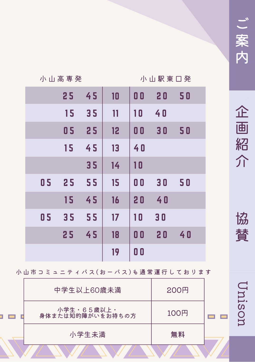 おーバス(小山市コミュニティバス)でも高専にお越しいただけます。利用可能な路線は以下です。