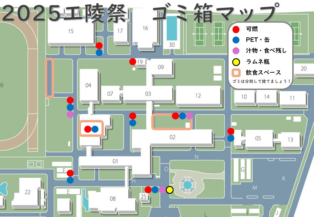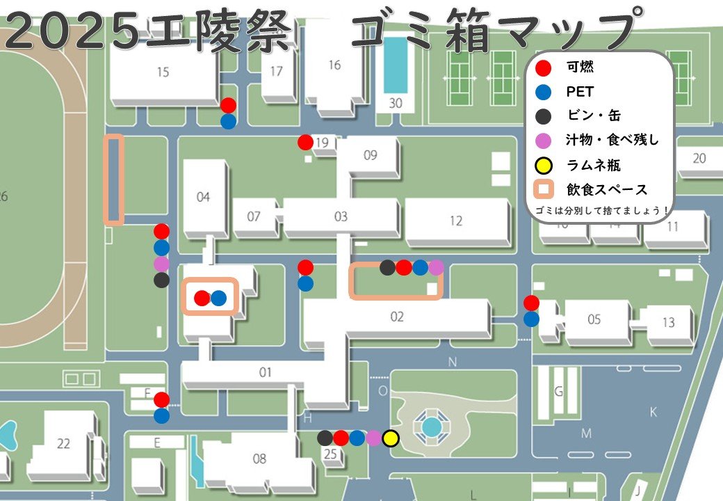 校内で出たゴミは以下のゴミ箱にお捨てください。ご協力をお願いします。