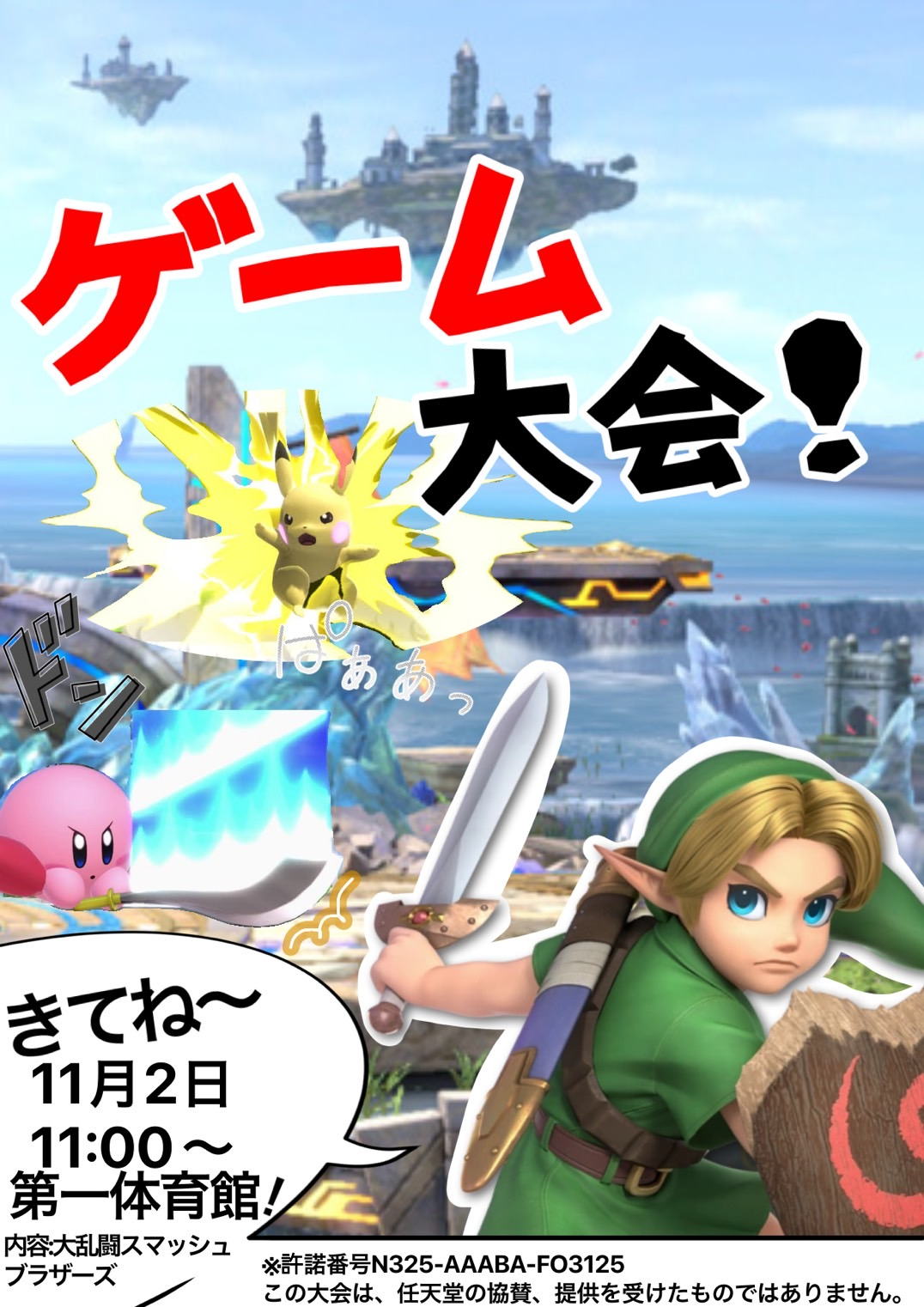 『大乱闘スマッシュブラザーズ』を使用したゲーム大会を開催します!1試合4分・6人乱闘・ストック数2機で、来場者は誰でも無料で参加OKです。たくさんの参加お待ちしています!