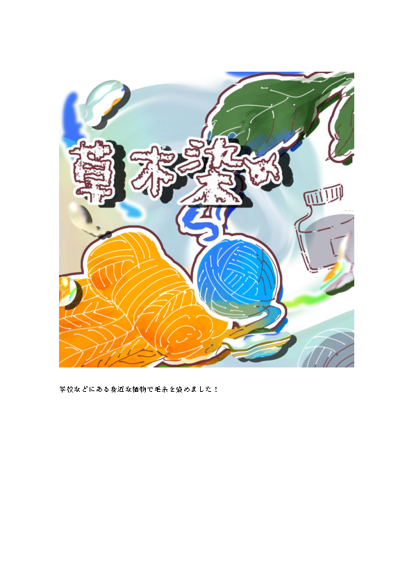 学校などにある身近な植物でいろんな色に毛糸を染めました!展示と小物の販売をしているのでぜひ見に来てください!